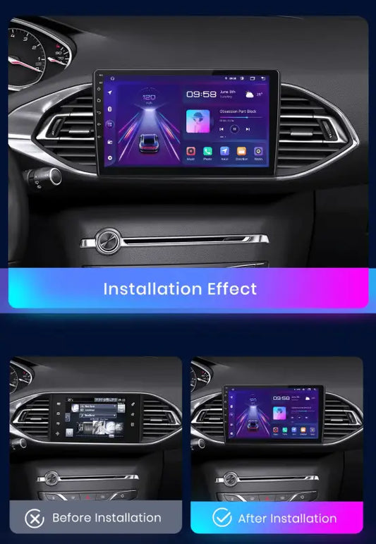 Radio Android 2DIN do Peugeot 308 / 308SW / 408 2012–2020 – Bezprzewodowy CarPlay + Android Auto