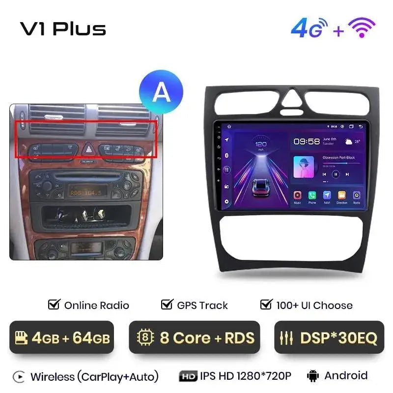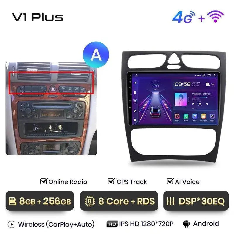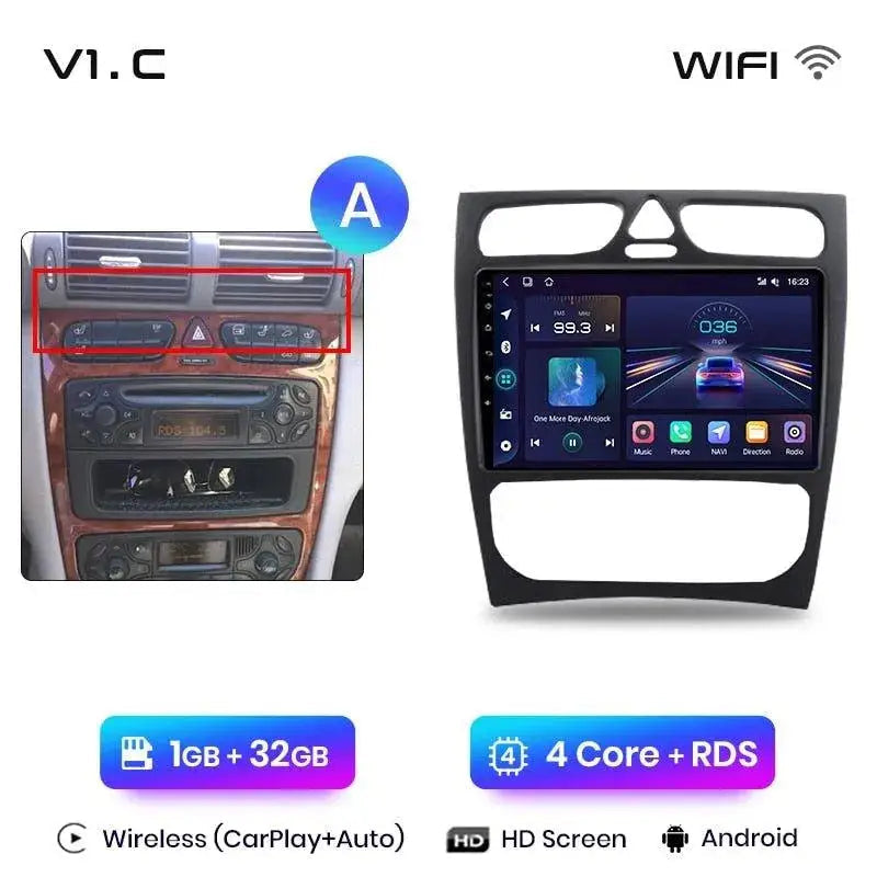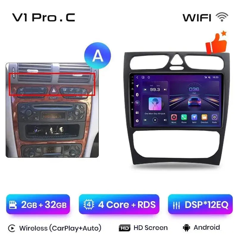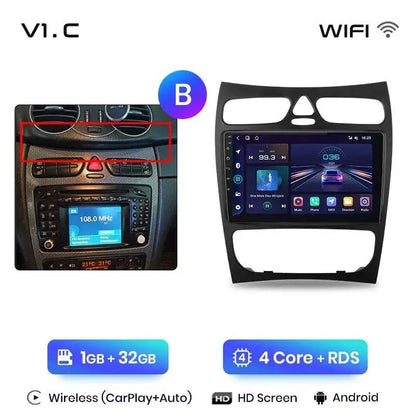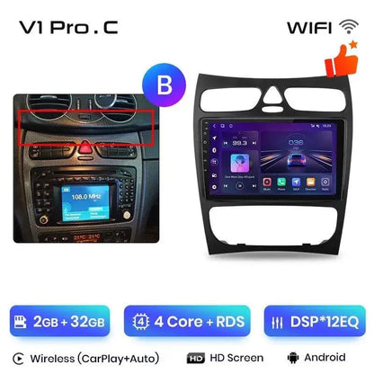 Android 2DIN radio til Mercedes C/CLK W203/S203/W209/A209 2000–2011 – Trådløs CarPlay + Android Auto