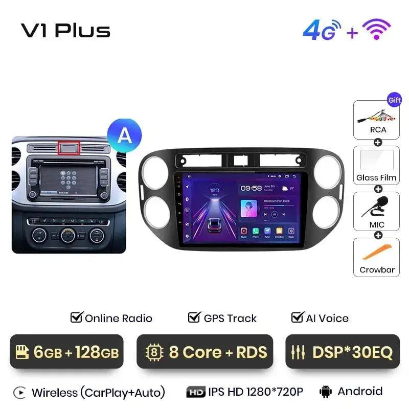 Android 2DIN Radio for Volkswagen Tiguan 2006–2016 – Wireless CarPlay + Android Auto