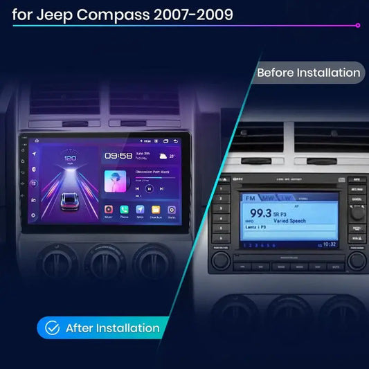 Android 2DIN radio ierīcei Jeep Compass 2007–2009 — bezvadu CarPlay + Android Auto