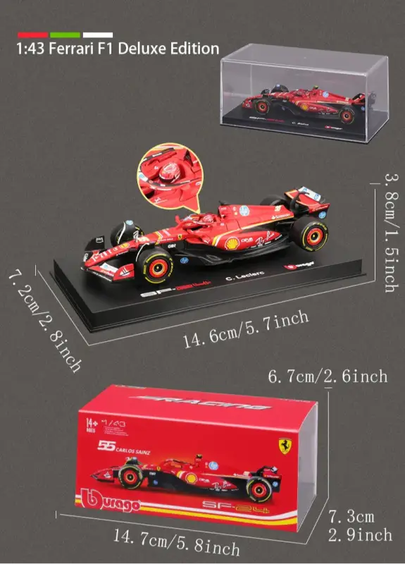 1:43 Ferrari SF24 SF23 F1 Metalowy Model Samochodu Wyścigowego Kolekcjonerski Leclerc Sainz Jr