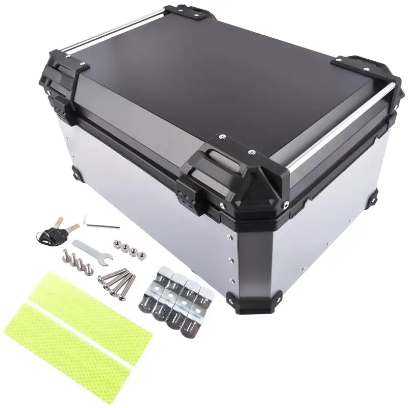 Aluminiowa Skrzynka Motocyklowa 65L Wodoszczelna z Zamkiem Bezpieczeństwa – Srebrna