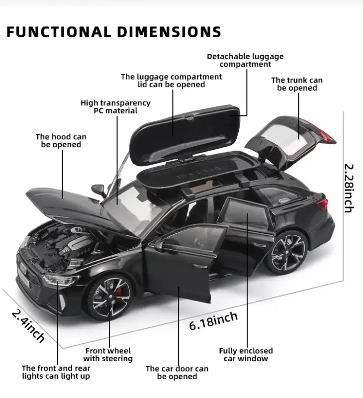 Audi RS6 1:32 – Metalowy Model Samochodu Black Edition, Realistyczna Zabawka Kolekcjonerska