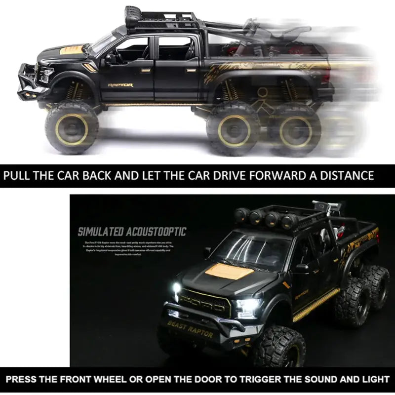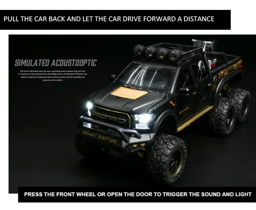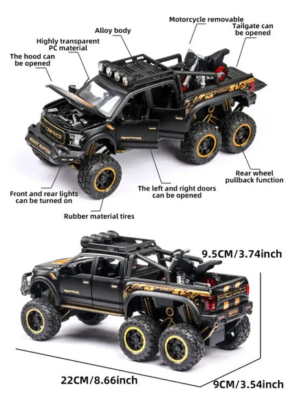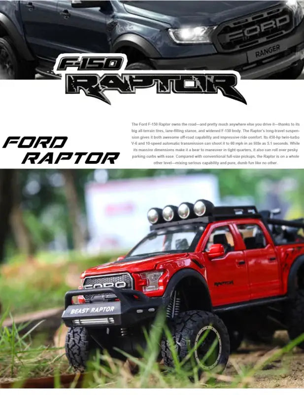 Ford F150 Raptor 1:24 Metalowy Model Pickup Niebieski Zabawka 3+ to doskonała propozycja dla młodych entuzjastów motoryzacji, którzy pragną posiadać wyjątkowy model swojego ulubionego samochodu. Wykonany z wysokiej jakości metalu, ten szczegółowy model w skali 1:24 zachwyca swoim realistycznym designem oraz solidnym wykonaniem.