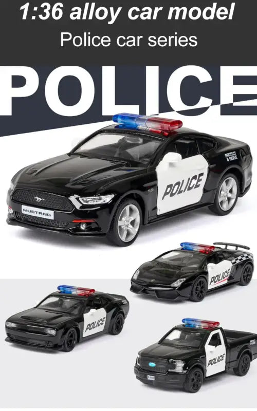 Ford, Lamborghini, Challenger 1/36 – Model Policyjny z Mechanizmem Cofania, Zabawka dla Chłopca