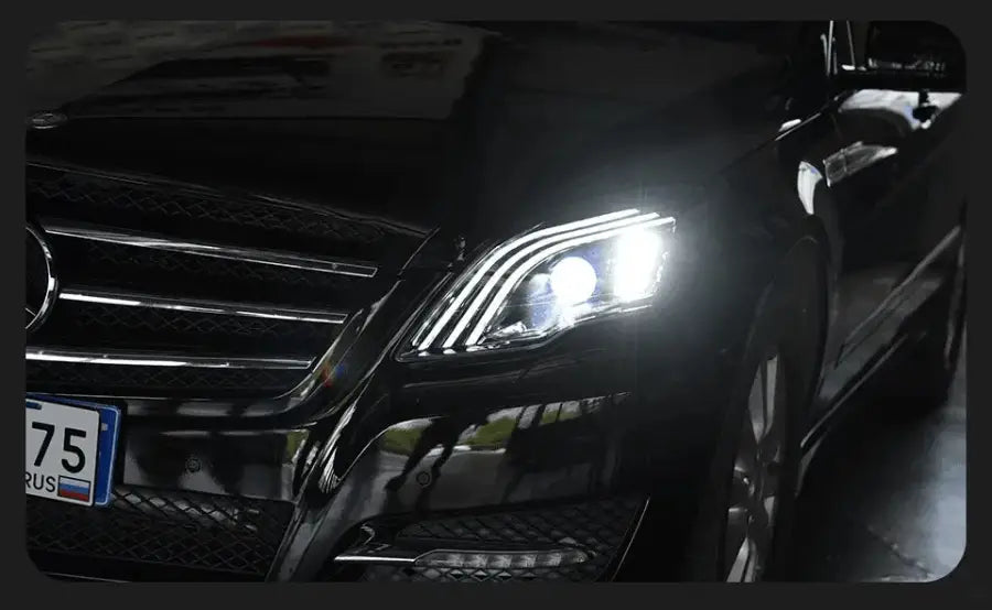 Odśwież wygląd i funkcjonalność swojego Mercedes Benz Klasa R, modeli W251/V251 z lat 2010-2017, w tym R320, R350, R500, dzięki nowoczesnym lampom samochodowym LED z technologią projektora. Te zaawansowane reflektory nie tylko zapewniają doskonałe oświetlenie drogi dzięki wykorzystaniu technologii LED i projektorów, ale również są wyposażone w światła do jazdy dziennej (DRL), co zwiększa bezpieczeństwo poprzez lepszą widoczność pojazdu.