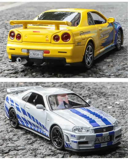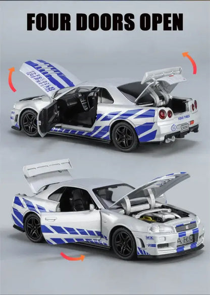 Nissan GTR R34 Skyline 1:32 – Metalowy Model Kolekcjonerski z Efektami Dźwiękowymi i Świetlnymi