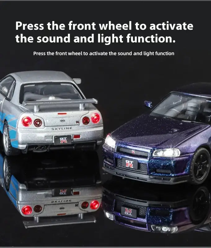 Nissan GTR R34 Skyline 1:32 Metalowy Model Supercar Z Efektami Dźwiękowymi I Świetlnymi