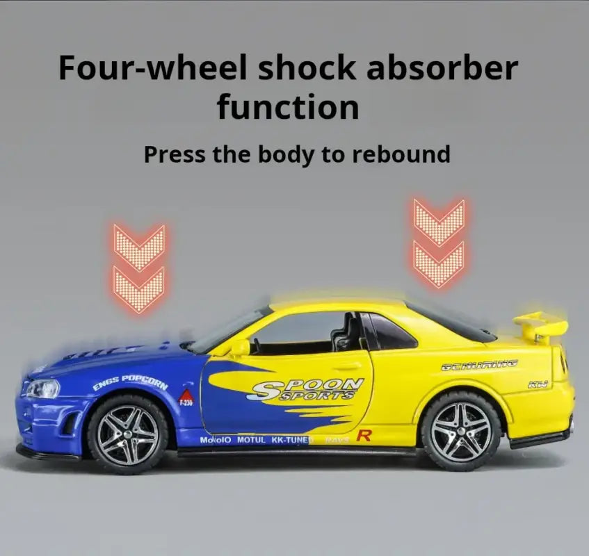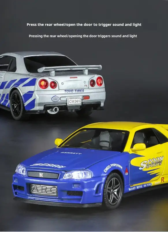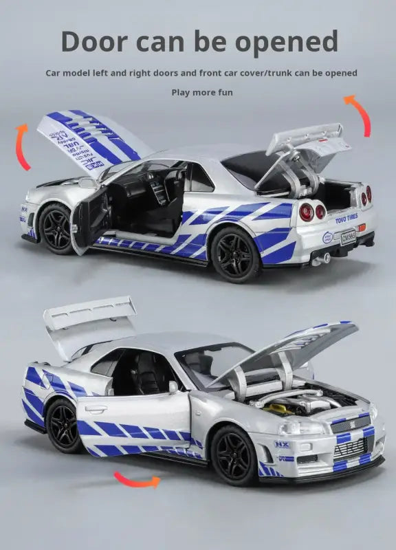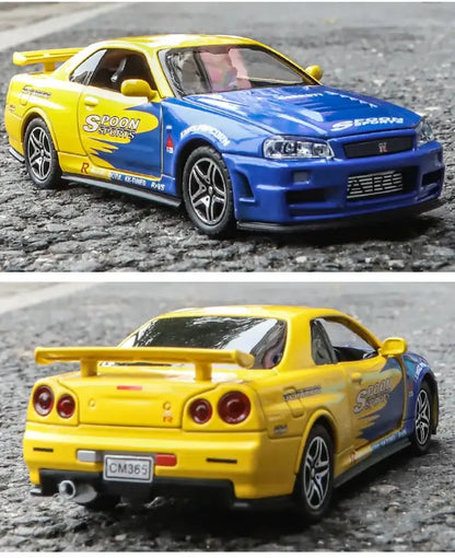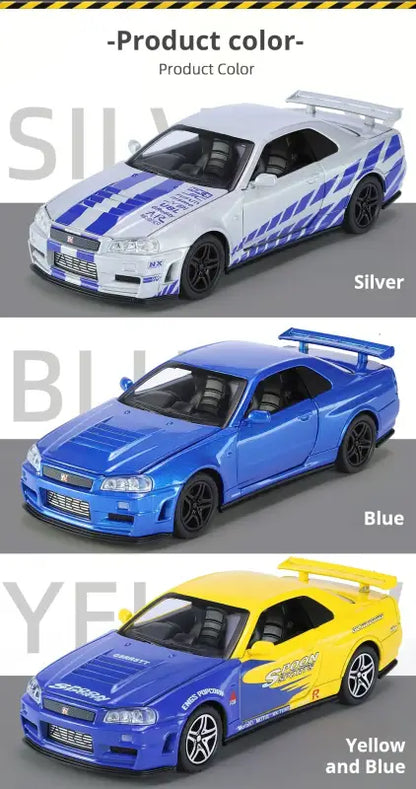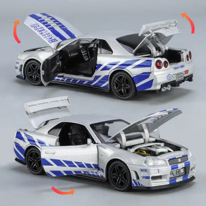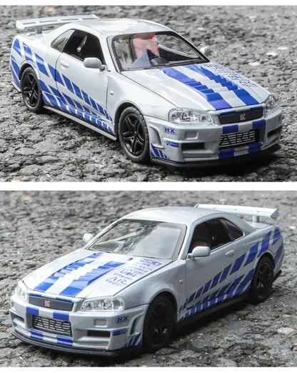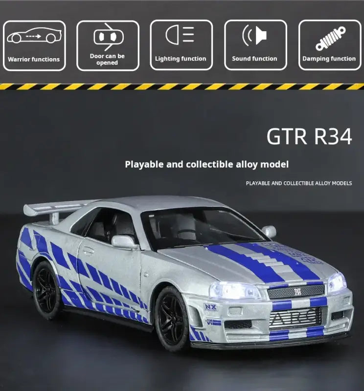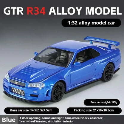 Nissan GTR34 Skyline 1:32 – Metalowy Model Wyścigowy z Dźwiękiem i Światłem