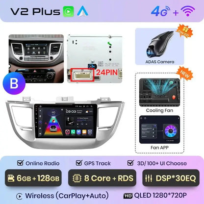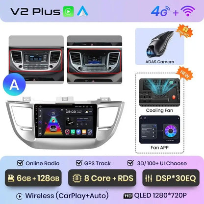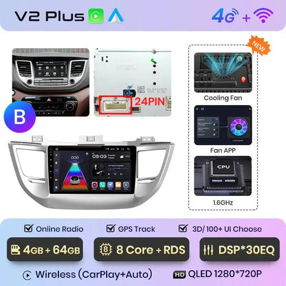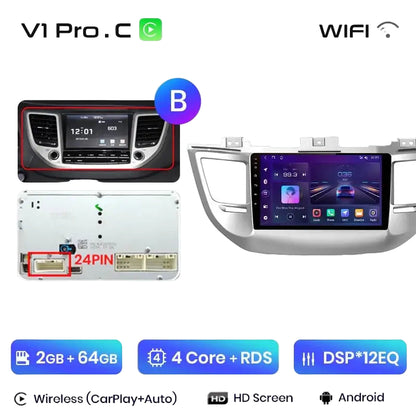 Radio Android 2DIN do Hyundai ix35 / Tucson 2015–2018 – Bezprzewodowy CarPlay + Android Auto
