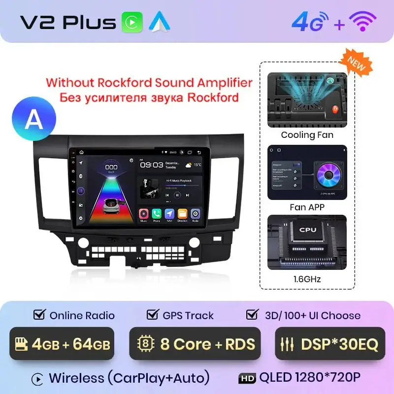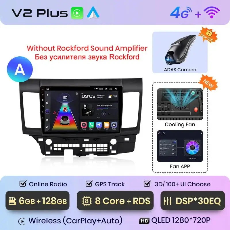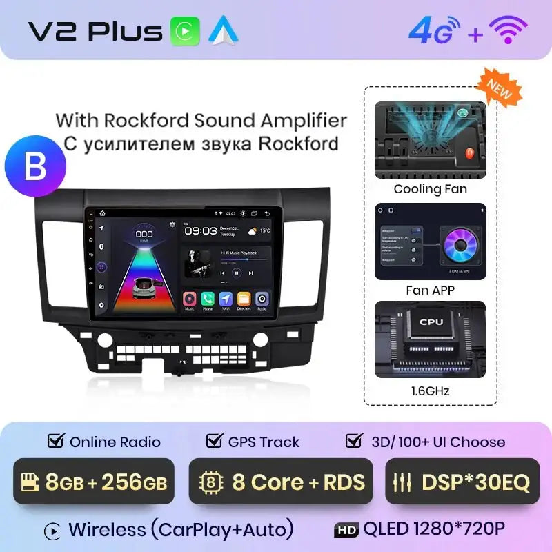 Radio Android 2DIN do Mitsubishi Lancer 2007–2013 – Bezprzewodowy CarPlay + Android Auto