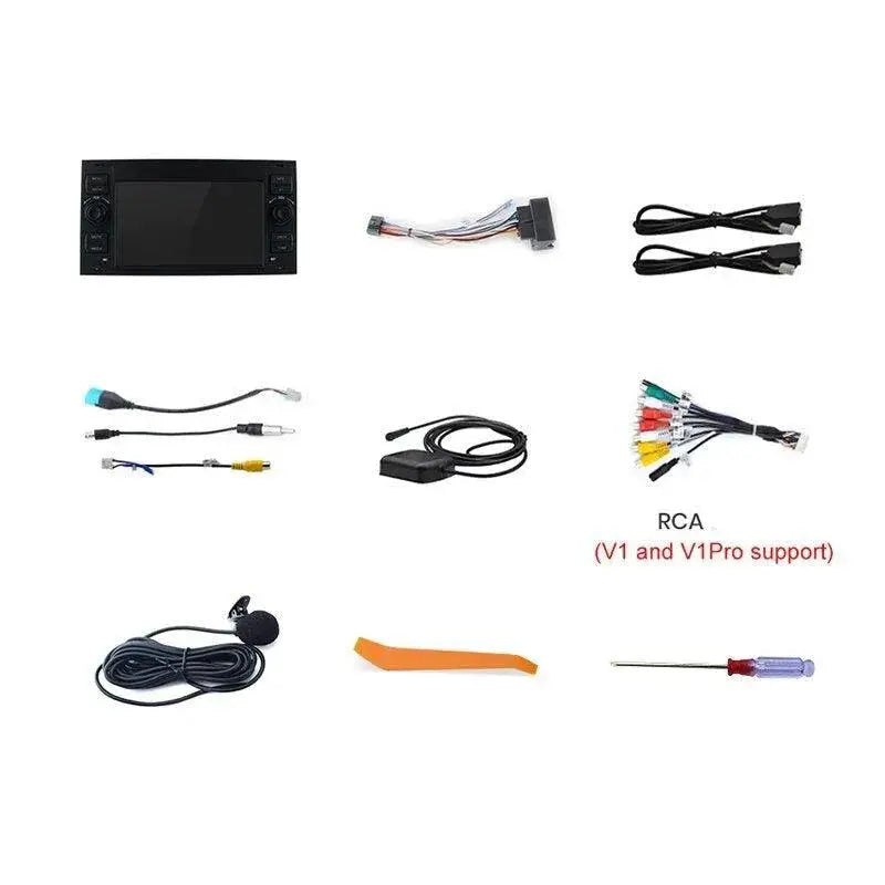 - Tylna kamera AHD, ADAS & GPS Tracer DVR, Monitorowanie ciśnienia w oponach, OBD2, Zewnętrzny mikrofon, Kabel RCA, DAB+