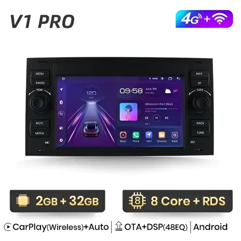 Radio Android 2DIN do Ford Focus / C-Max / Mondeo / Kuga / Galaxy – Bezprzewodowy CarPlay + Android Auto