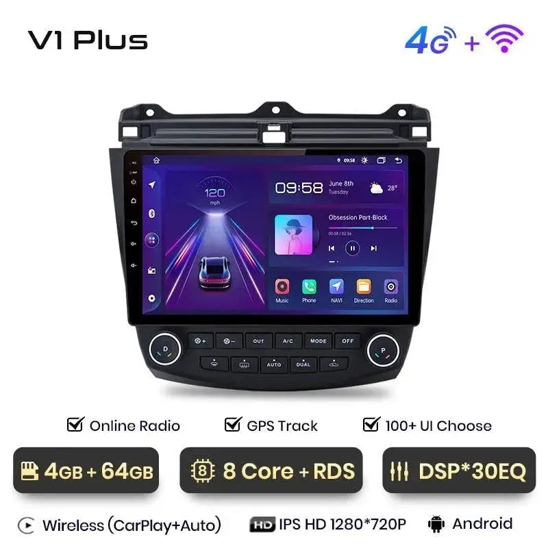 Radio Android 2DIN do Honda Accord VII 2003–2008 – Bezprzewodowy CarPlay + Android Auto