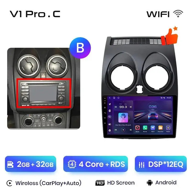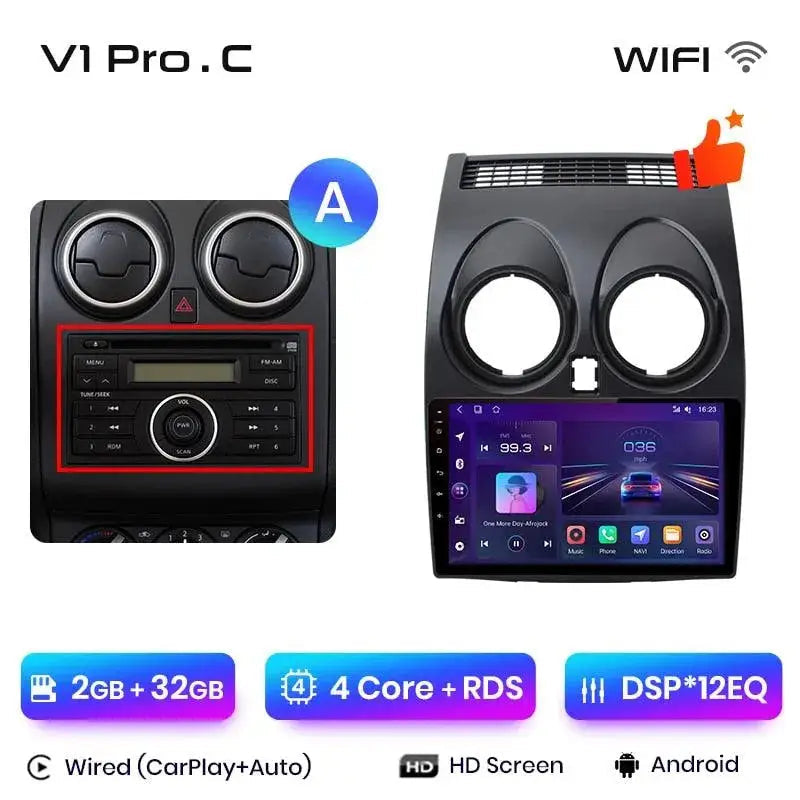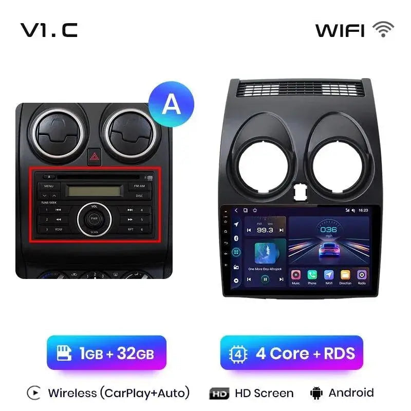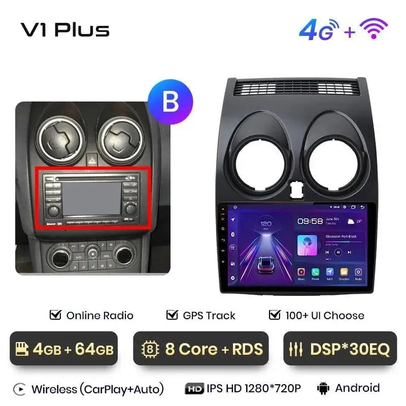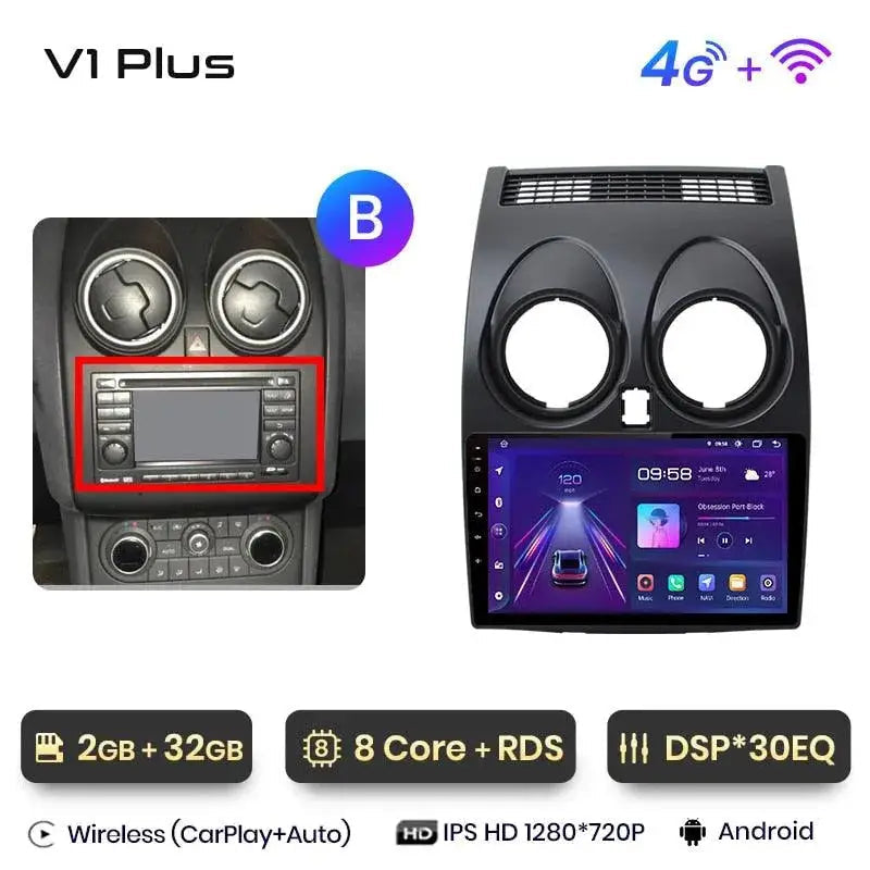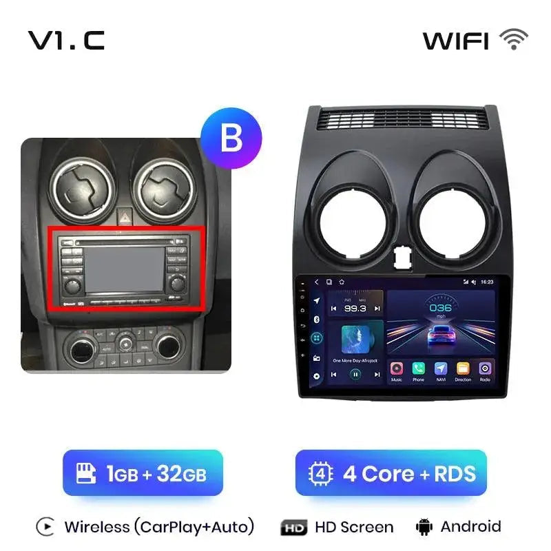 Radio Android 2DIN do Nissan Qashqai J10 2006–2013 – Bezprzewodowy CarPlay + Android Auto