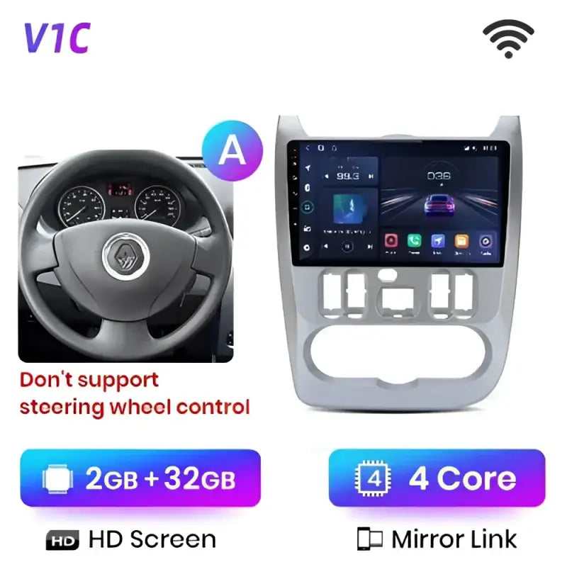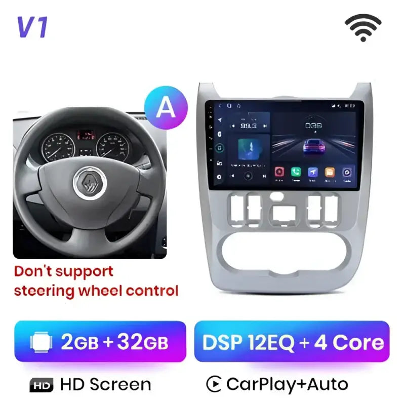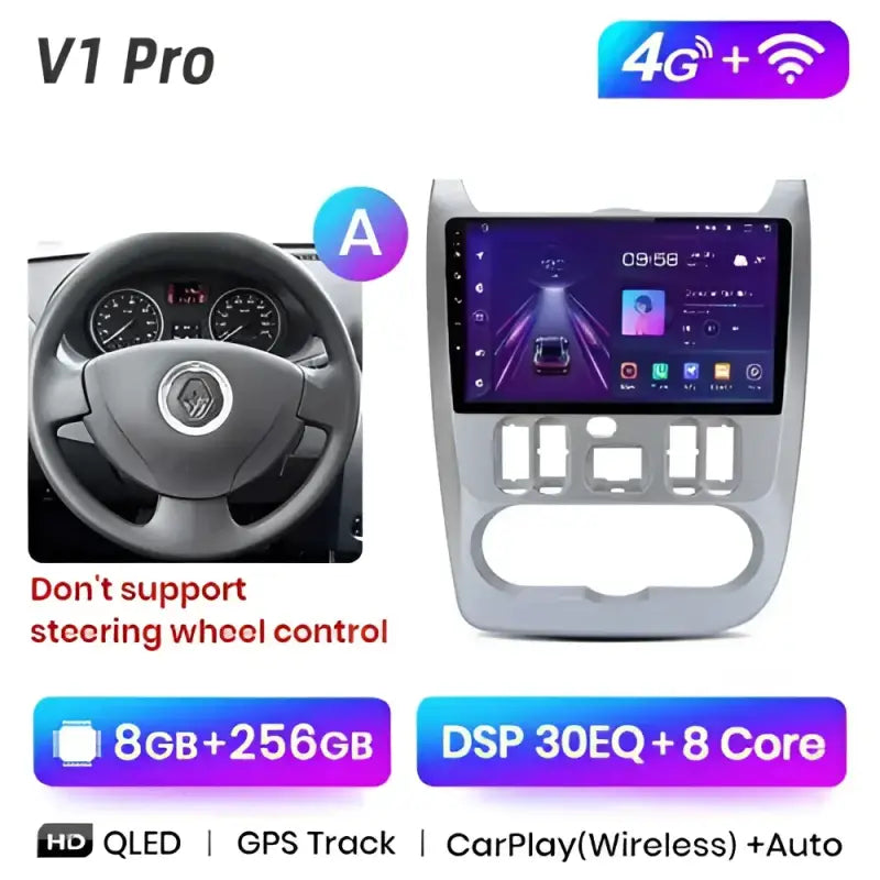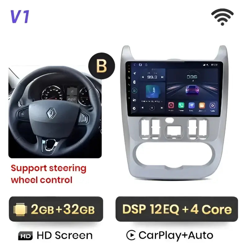 Radio Android 2DIN do Renault Logan 1 / Sandero / Dacia Duster 2009–2015 – Bezprzewodowy CarPlay + Android Auto
