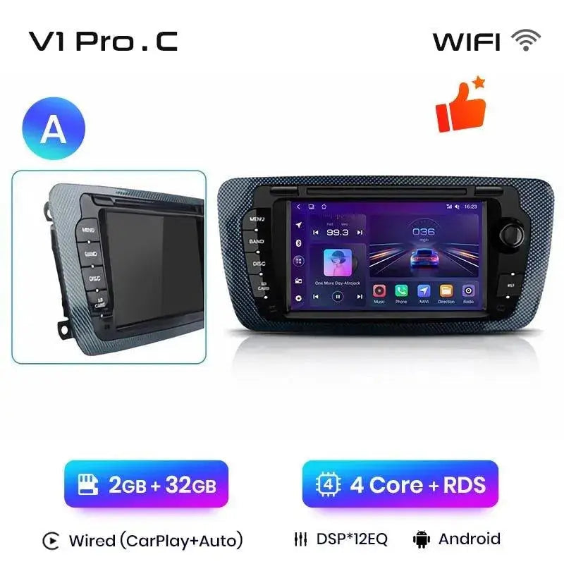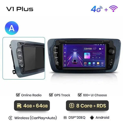Radio Android 2DIN do Seat Ibiza 6J 2009–2013 – Bezprzewodowy CarPlay + Android Auto
