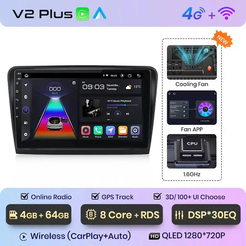 Radio Android 2DIN do Skoda Superb II 2008–2015 – Bezprzewodowy CarPlay + Android Auto