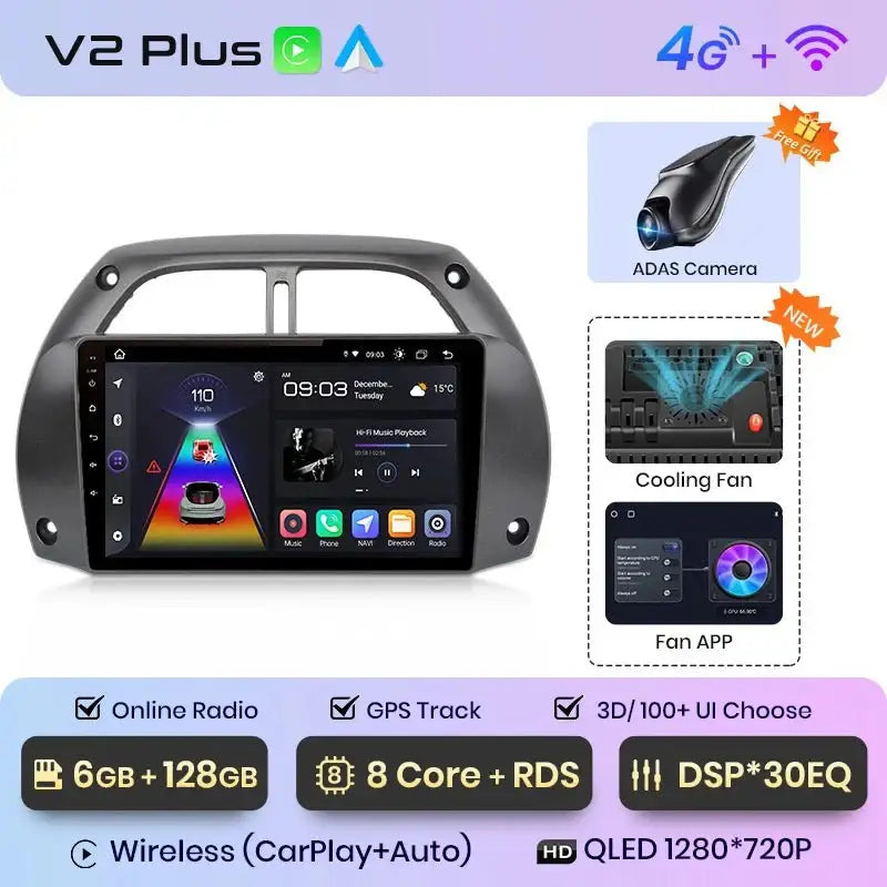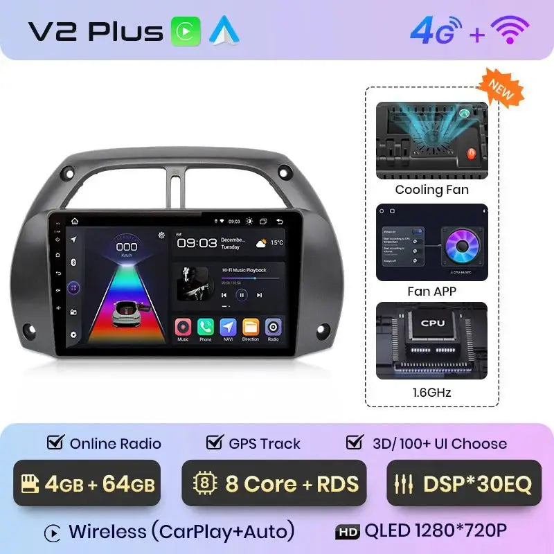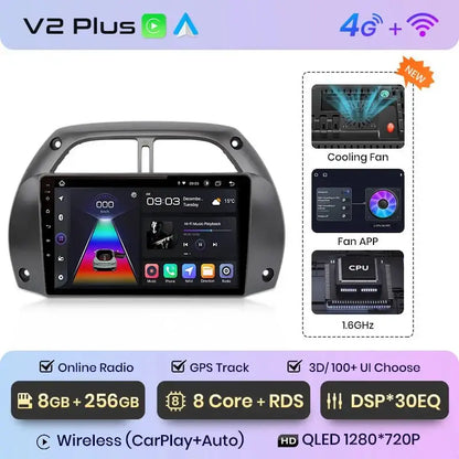 Radio Android 2DIN do Toyota RAV4 2001–2005 – Bezprzewodowy CarPlay + Android Auto
