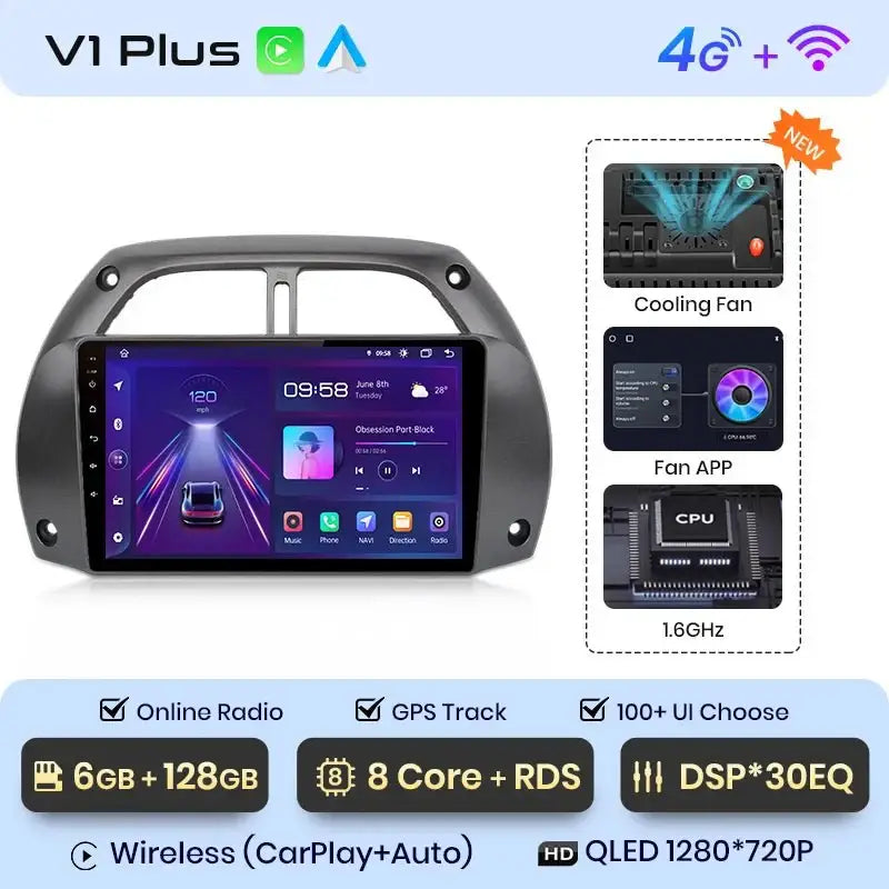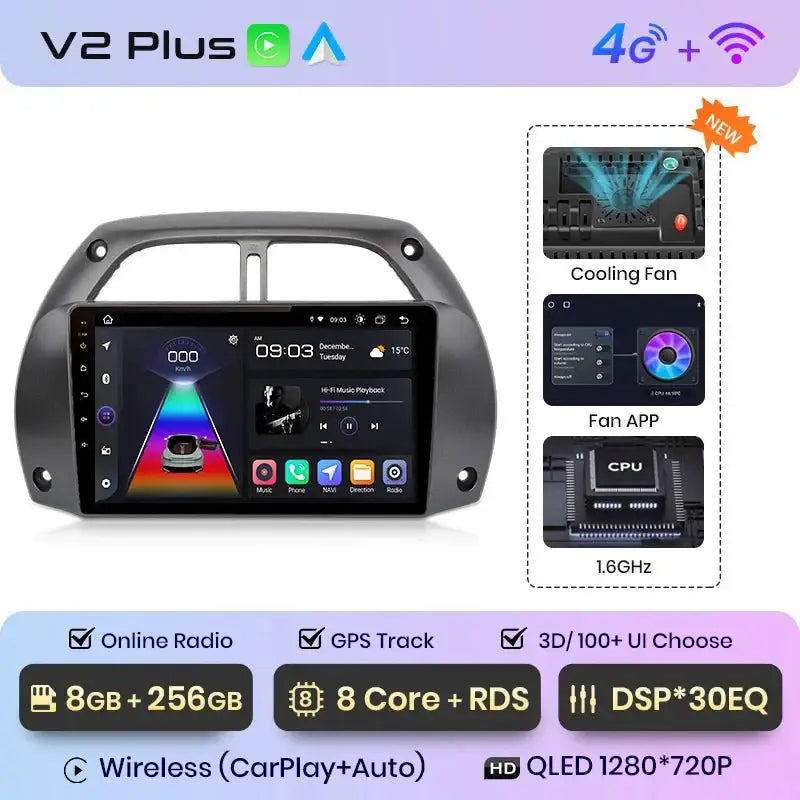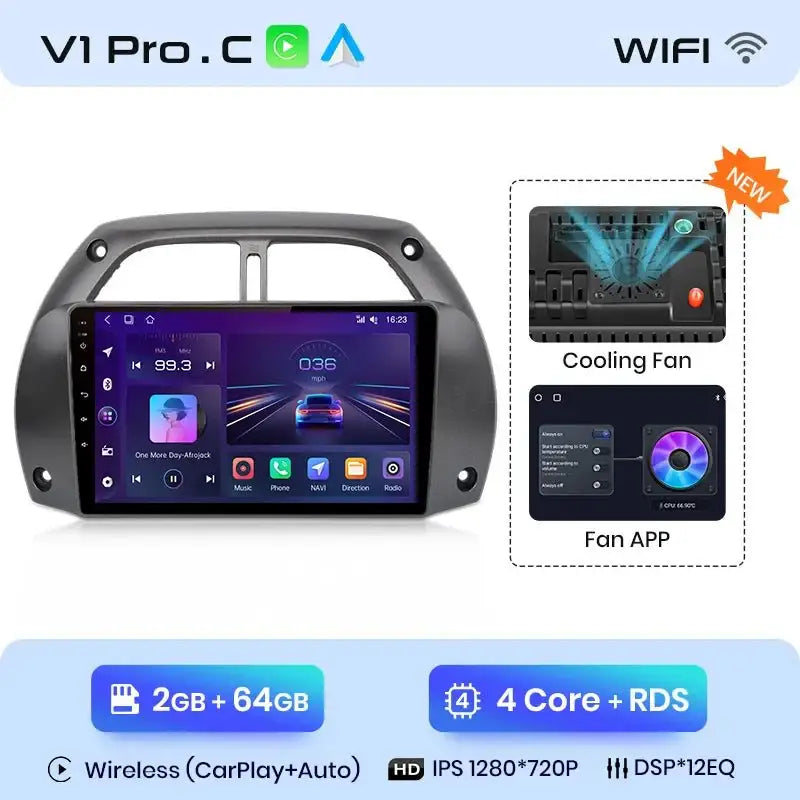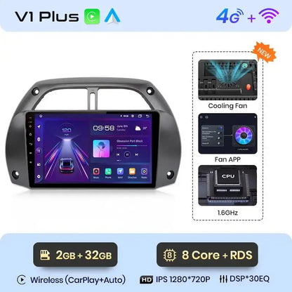 Radio Android dla Toyota RAV4 (2001-2005) to idealne rozwiązanie dla kierowców poszukujących nowoczesnych funkcji multimedialnych i nawigacyjnych w swoim kompaktowym SUV-ie. Dzięki bezprzewodowej obsłudze CarPlay i Android Auto, dużemu ekranowi, szerokim opcjom pamięci oraz dodatkowym akcesoriom, to radio oferuje pełną funkcjonalność, wygodę oraz bezpieczeństwo na każdej trasie.