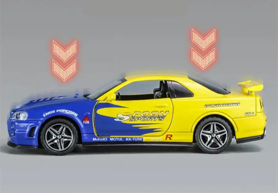 Skyline Ares GTR R34 1:32 – Metalowy Model Samochodu Wyścigowego z Efektami Dźwiękowymi i Świetlnymi