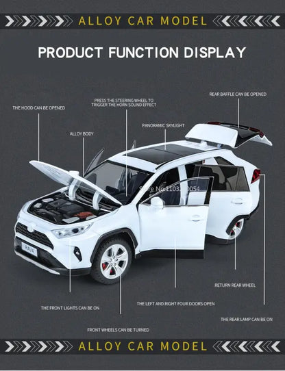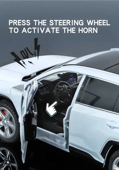 Toyota RAV4 1:24 Metalowy Model Samochodu dla Dzieci z Efektami Dźwiękowymi i Świetlnymi