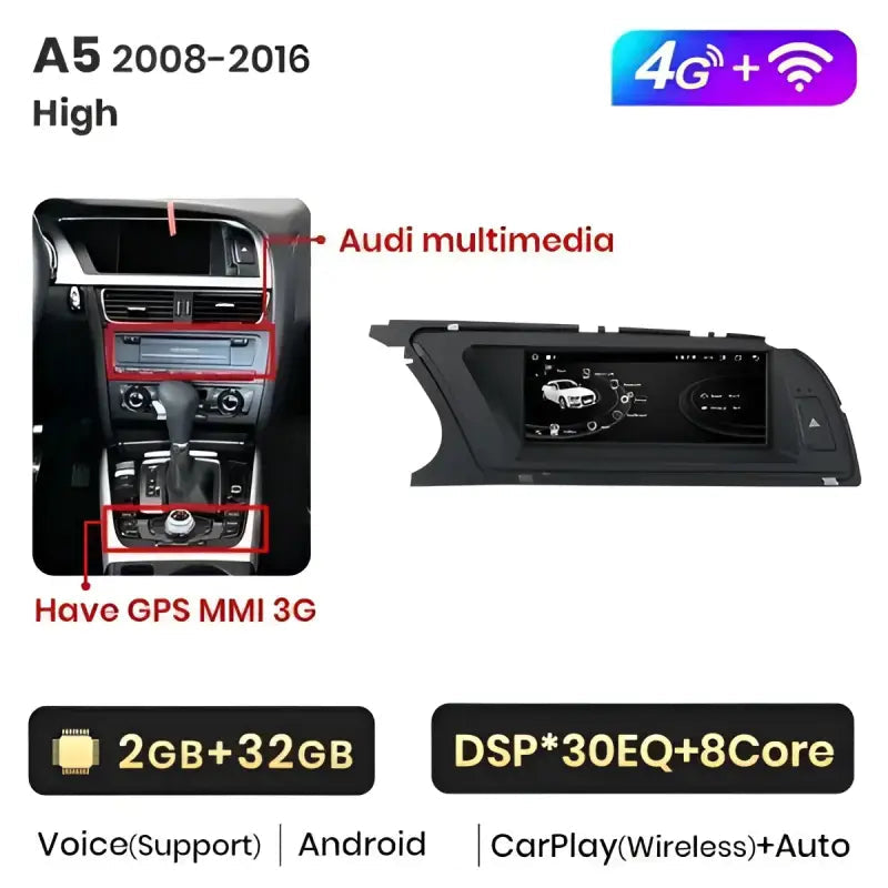 Android-radio 8.8" för Audi A5 2009–2016 – Trådlös CarPlay + Android Auto